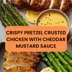This Pretzel Crusted Chicken with Cheddar Mustard Sauce features juicy chicken breasts coated in a crunchy, flavorful pretzel crust and topped with a rich, tangy cheddar mustard sauce. Perfectly baked or pan-fried, this dish combines savory, smoky, and cheesy elements for a delightful weeknight meal.