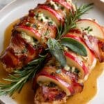 This Prosciutto Apple and Sage Butter Chicken with Cider Pan Sauce is a harmonious blend of savory and sweet flavors. Tender chicken breasts wrapped in prosciutto, layered with crisp apples and fragrant sage, then finished with a rich cider butter sauce create an impressive yet approachable dish perfect for any dinner.