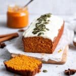 Keywords: pumpkin loaf cake, pumpkin bread, cream cheese frosting, autumn dessert, spiced cake, baked pumpkin cake