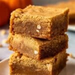 Keywords: pumpkin blondies, pumpkin spice blondies, autumn desserts, white chocolate blondies, pecan blondies, fall baking, pumpkin recipes
