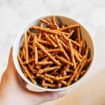 - Shake to Coat: Place a tight-fitting lid on the bowl and shake vigorously to ensure all pretzels are evenly coated with the oil and seasonings.