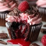 Keywords: Chocolate cupcakes, raspberry lava cupcakes, chocolate raspberry dessert, raspberry buttercream, lava center cupcakes