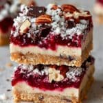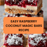 Raspberry Coconut Magic Bars combine a buttery crust with layers of raspberry jam, sweetened condensed milk, coconut, nuts, and chocolate chips. This easy-to-make dessert is a delightful mix of textures and flavors that’s perfect for any occasion.