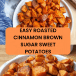 Keywords: Roasted sweet potatoes, cinnamon sweet potatoes, brown sugar sweet potatoes, roasted side dish, fall recipes, easy vegetable side, baked sweet potatoes