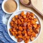 Keywords: Roasted sweet potatoes, cinnamon sweet potatoes, brown sugar sweet potatoes, roasted side dish, fall recipes, easy vegetable side, baked sweet potatoes