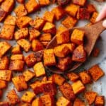 - Use a large sheet pan and ensure sweet potato pieces do not overlap for best roasting results without steaming.
