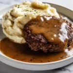 This classic Salisbury Steak and Gravy recipe features juicy ground beef patties cooked in a rich and savory mushroom onion gravy. Perfectly seasoned and simmered to perfection, these flavorful steaks make a comforting and hearty meal ideal for weeknight dinners.