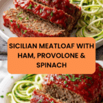 This Sicilian Meatloaf is a savory twist on the classic comfort food, featuring layers of ham, provolone cheese, and fresh baby spinach wrapped inside seasoned ground beef. Baked to perfection and topped with marinara sauce, it’s a flavorful and satisfying meal perfect for family dinners.
