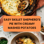 Keywords: shepherd’s pie, skillet shepherd’s pie, lamb and beef pie, mashed potato topping, easy shepherd’s pie, comfort food, one-pan meal