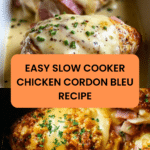Slow Cooker Chicken Cordon Bleu is a comforting and easy twist on a classic dish. Tender chicken breasts are topped with ham and Swiss cheese, then cooked slowly in a creamy sauce with a buttery stuffing topping. This recipe is perfect for busy days when you want a delicious meal waiting for you.