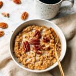 This Slow Cooker Pumpkin Pie Oatmeal is a warm, comforting breakfast made with steel-cut oats and rich pumpkin puree, slow-cooked to perfection with aromatic pumpkin pie spices. It’s an easy, hands-off recipe ideal for busy mornings, delivering a creamy and flavorful meal that’s both nutritious and satisfying. Topped with chopped pecans and a drizzle of maple syrup, this dish captures the essence of fall in every bite.