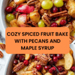 This Spiced Fruit Bake Dessert is a warm, comforting dish featuring a medley of apples, pears, grapes, pecans, and fresh cranberries, all infused with aromatic cinnamon, nutmeg, and citrus flavors. Sweetened naturally with maple syrup and orangey zest, it’s an easy-to-make, healthy dessert perfect for cozy evenings or festive occasions.