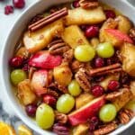 This Spiced Fruit Bake Dessert is a warm, comforting dish featuring a medley of apples, pears, grapes, pecans, and fresh cranberries, all infused with aromatic cinnamon, nutmeg, and citrus flavors. Sweetened naturally with maple syrup and orangey zest, it’s an easy-to-make, healthy dessert perfect for cozy evenings or festive occasions.