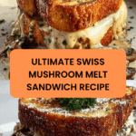A comforting and savory Swiss Mushroom Melt Sandwich featuring caramelized onions, sautéed cremini mushrooms, and melted Swiss cheese layered between slices of buttery toasted sourdough bread. This hearty vegetarian sandwich is perfect for a satisfying lunch or dinner.