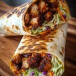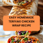 This Teriyaki Chicken Wrap recipe combines tender marinated chicken with fresh, crunchy vegetables wrapped in a soft tortilla for a delicious and easy-to-make meal. Perfect for lunch or dinner, these wraps bring together sweet and savory teriyaki flavors with crisp lettuce, carrots, bell peppers, and green onions for a nutritious and flavorful experience.