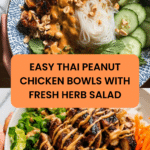 Thai Peanut Chicken Bowls are a vibrant, flavorful meal that combines tender marinated chicken with fresh cucumber salad and fragrant herbs. This easy recipe comes together quickly and offers a delightful balance of savory, tangy, and nutty tastes perfect for any weeknight dinner.