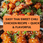 Thai Sweet Chili Chicken is a delightful dish that combines the perfect balance of sweet and spicy flavors. Tender chicken cutlets are cooked in a flavorful sauce made with sweet chili, honey, and lime, creating a sticky, savory glaze that’s sure to please your taste buds.