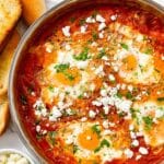 - Finish and Serve: Remove the skillet from heat. Sprinkle crumbled feta cheese and diced fresh parsley over the top. Serve immediately, accompanied by toasted baguette slices for dipping into the flavorful sauce.