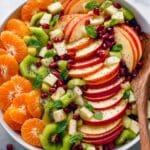 - Serve and Garnish: Sprinkle the pomegranate arils over the top of the dressed fruit. Add chopped fresh mint if desired for an aromatic touch. Serve the salad immediately as it tastes best within 1–3 hours and does not store well as leftovers.